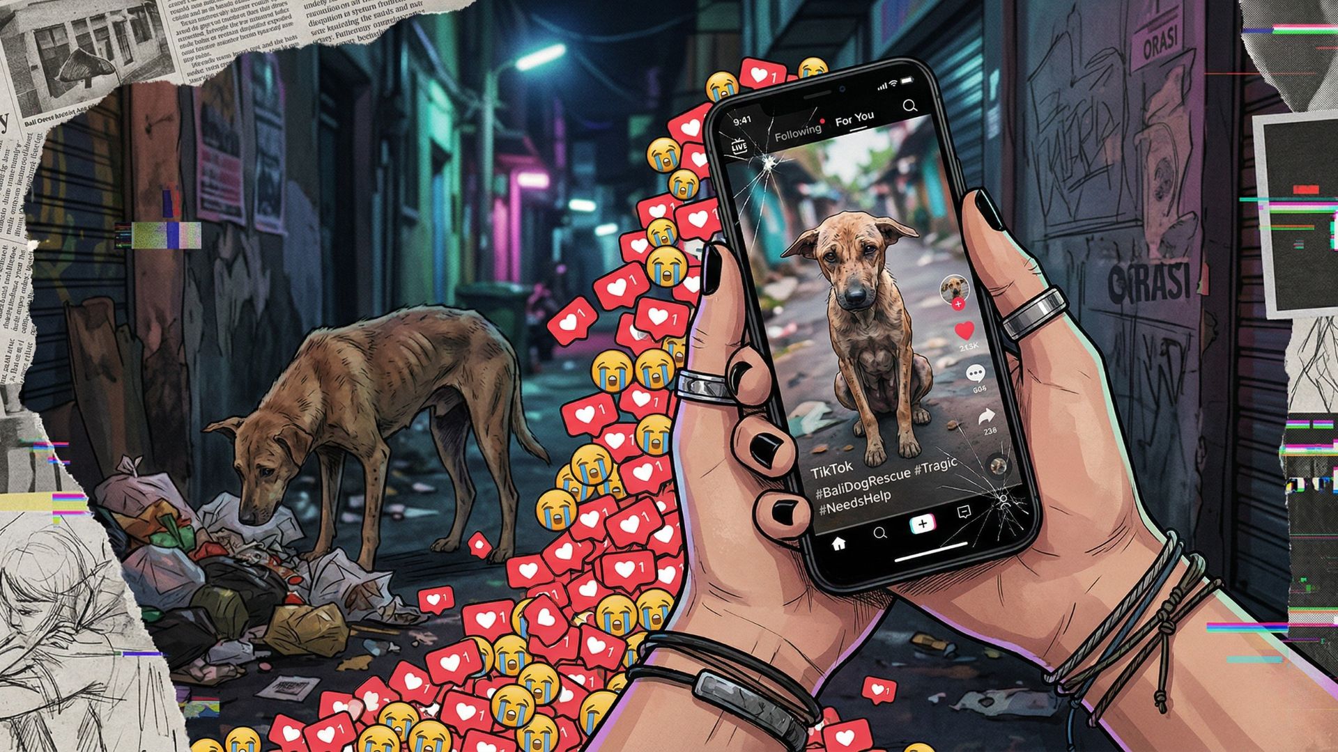 Jam 2 pagi, mata udah sepet abis doomscrolling TikTok. Tiba-tiba FYP ngasih video rescue anjing Bali yang lagi kurus kering di pinggir jalan, badannya penuh scabies. Khe nangis dikit, ngetik komen “Semoga kelak ada orang baik yang adopsi 🥺🙏”, terus lanjut swipe ke video orang joget. Merasa udah menyelamatkan dunia malam ini, Ton?