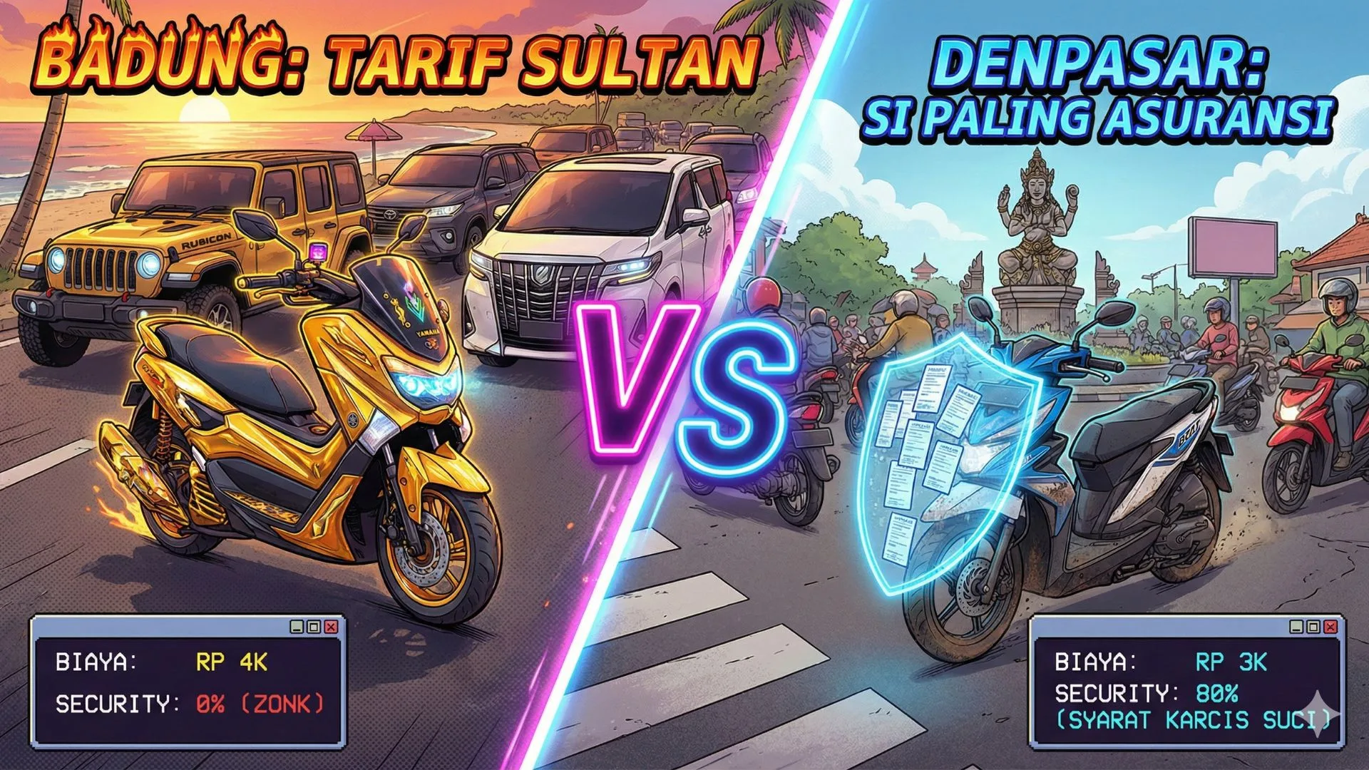 Jadi gimana, Ton? Mending bayar mahal di Badung demi estetik jalanan, atau parkir di Denpasar sambil ngetetin dompet biar karcis nggak ilang?